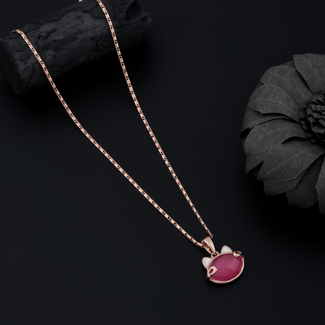 Crimson Kitty Necklace (Rose Gold)