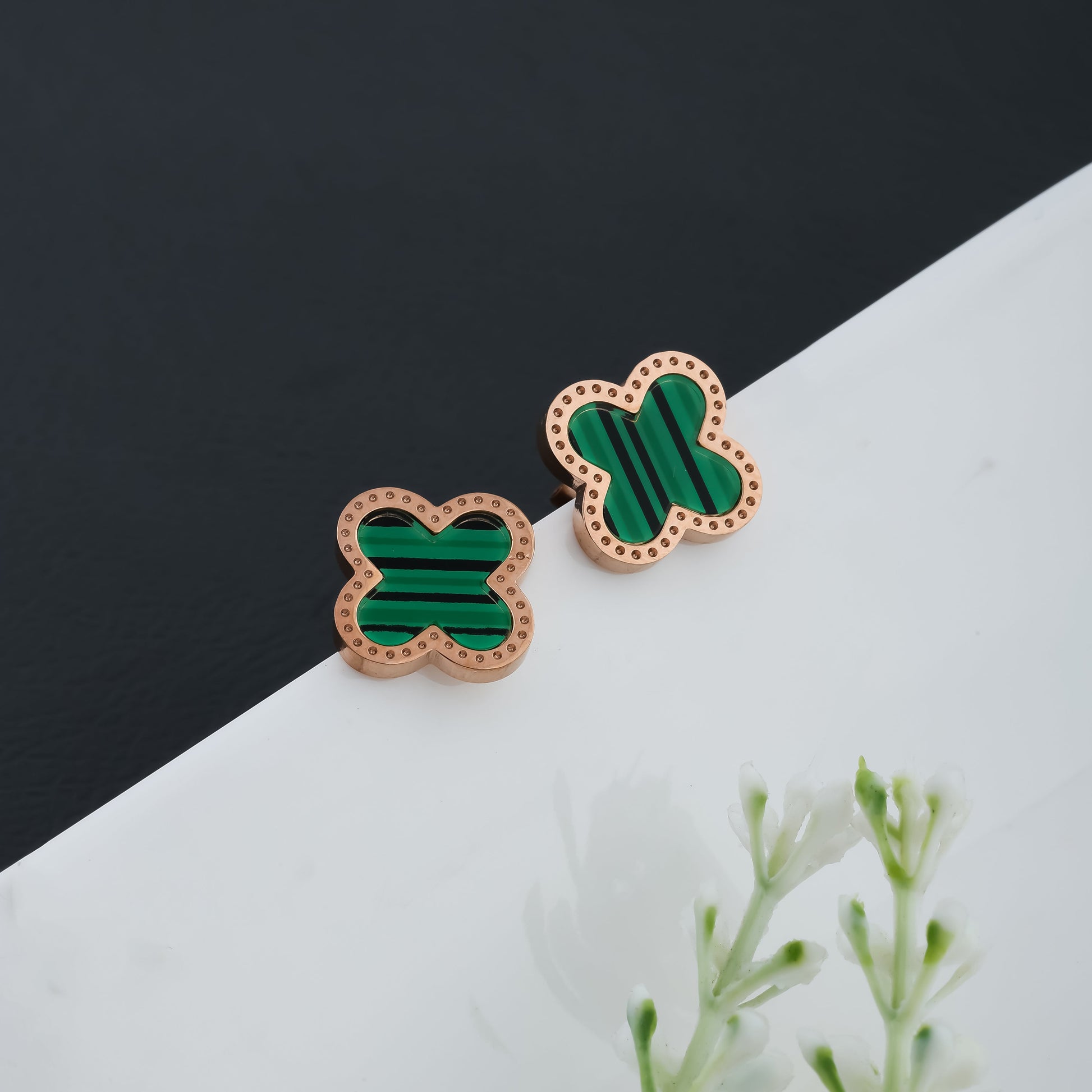 Malachite Alhambra Earrings (Rose Gold)