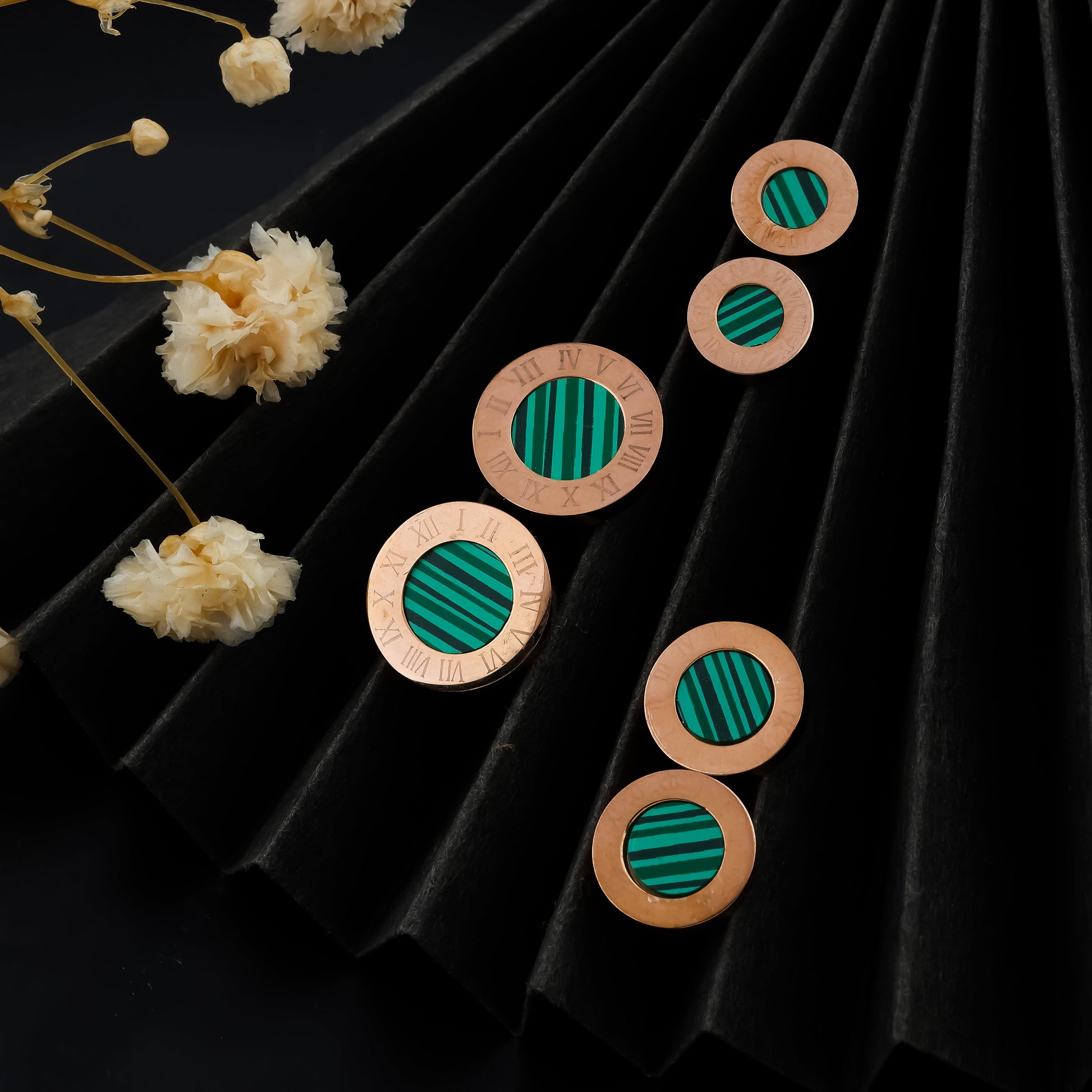 Malachite Stud Earrings (Rose Gold)