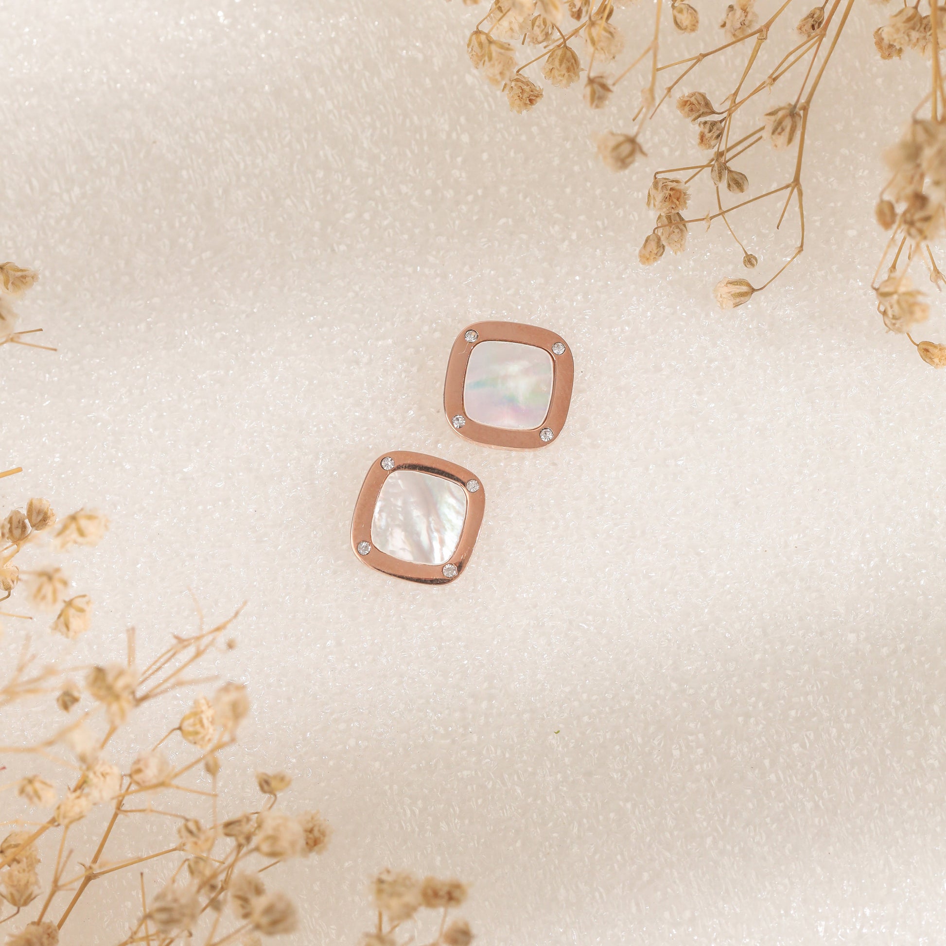 Mother Of Pearl Frame Earrings (Rose Gold)