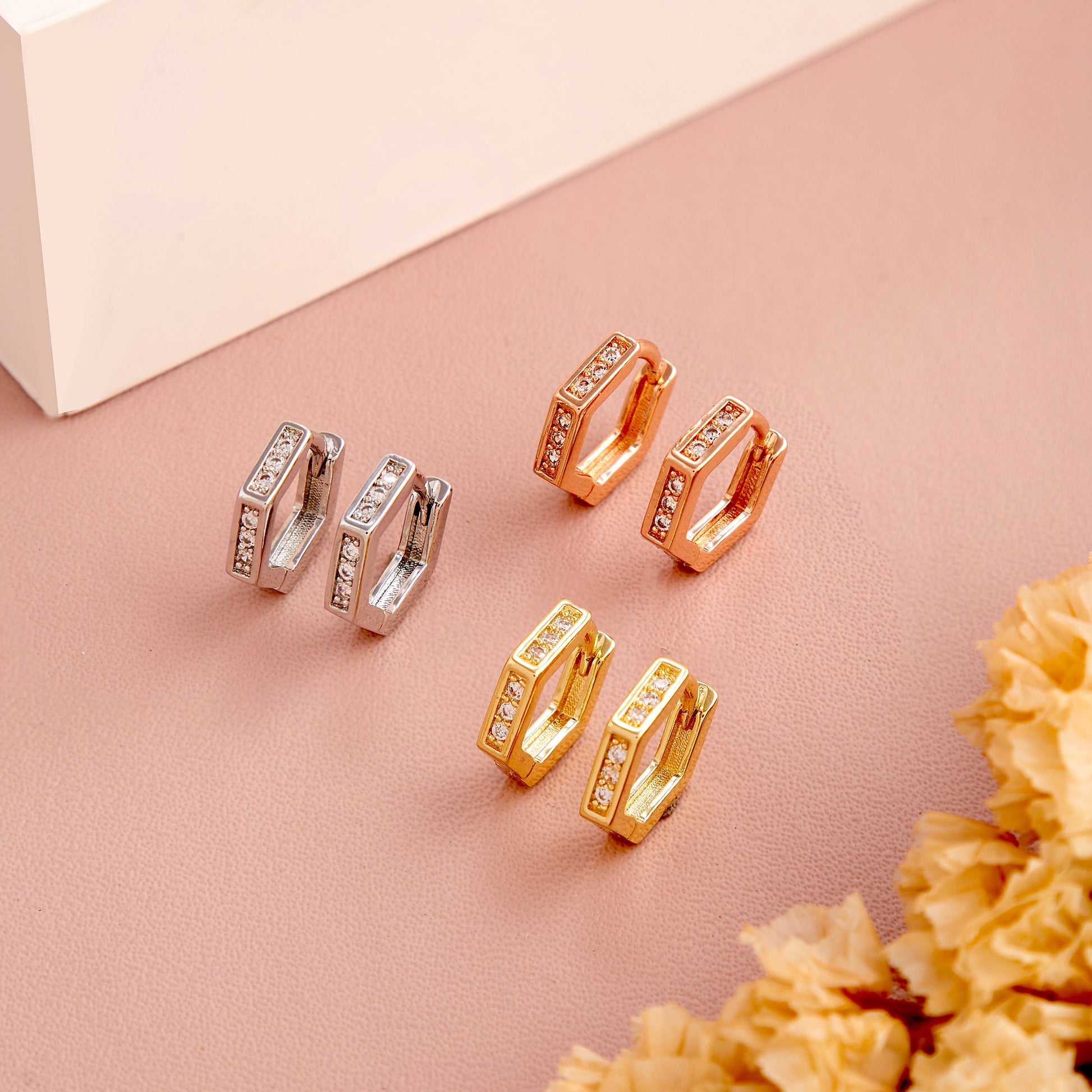 Pentagon Shape 3 Pack Earrings (Multicolor)
